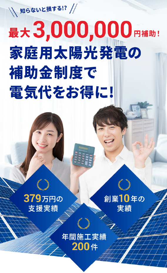 そしてなにより通常では費用のかかる設置工事費が今なら国や自治体の補助金によって大幅に圧縮できるのが最大の魅力と言えるでしょう。